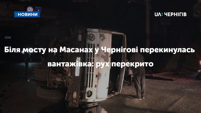 Біля мосту на Масанах у Чернігові перекинулась вантажівка: рух перекрито