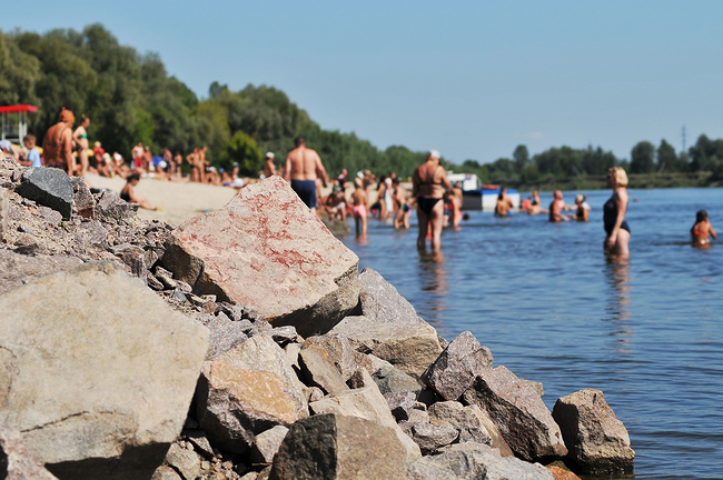 Да, река в районе центрального городского пляжа обмелела. Полностью открылись все «шпоры», которые были предназначены для сдерживания быстрого течения, «лягушатник» переносится все дальше и дальше от берега. Спасательные службы несут свою вахту исправно, ведь пляж «прославился» в этом году количеством потонувших. За границами пляжа установлены таблички «Увага! Це місце небезпечне для купання!», однако отдыхающих это не останавливает, но спасатели за их жизни уже не в ответе.
