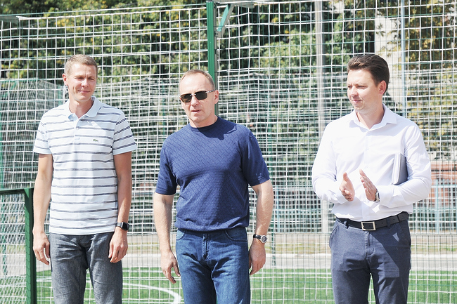 Геннадий Прокопович подарил школе новые футбольные мячи, а юные футболисты первыми испытали спортивную площадку.
