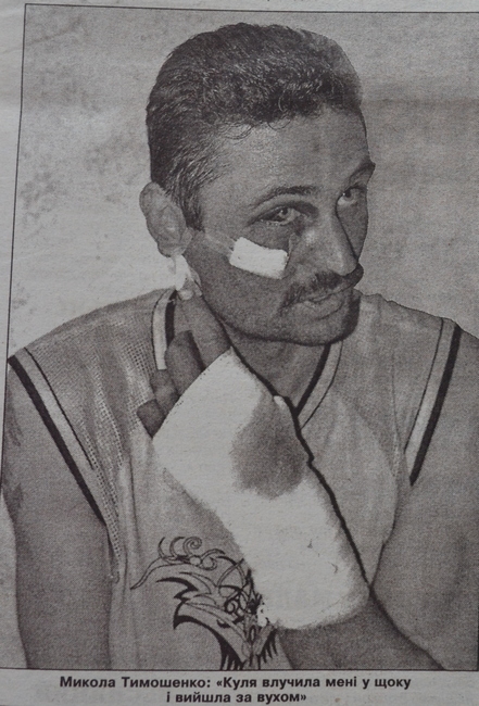 — Того вечора я був на чергуванні, — говорить інспектор патрульної служби райвідділу міліції водій-прапорщик Микола Тимошенко. — Близько дев'ятої вечора з села Чемер надійшов сигнал, що один місцевий житель з мисливською рушницею бігає селом і погрожує фізичною розправою, обстріляв автомобіль марки „Фольксваген". Виїхавши на місце події, мої колеги пішли до заявника, а я залишився біля своєї машини. Хвилин за п 'ять побачив, що велосипедом наближається якийсь чоловік. На відстані 5-6 метрів, нічого не кажучи, він вихопив наган і вистрілив умій бік. Куля влучила мені у ліву руку. Оскільки я цього не чекав, то на кілька секунд навіть розгубився. А потім крикнув йому: „Ти що робиш? Міліція!” Той відповів нецензурною лайкою і став відступати. Сховавшись за машиною, я двічі вистрілив у повітря і попередив, що якщо він не кине зброї, стрілятиму на ураження. Мені здалося, що він нахилився, аби покласти пістолет. Але тільки-но я виглянув Із-за машини, як знову пролунав постріл. Цього разу куля влучила мені у щоку. Оскільки між мною І нападником с тояла ма шина, мої колеги не могли стріляти у відповідь. Коли я вже впав на землю, знову постріл — куля влучила у ліву ногу. Потім я знепритомнів І отямився вже у районній лікарні.