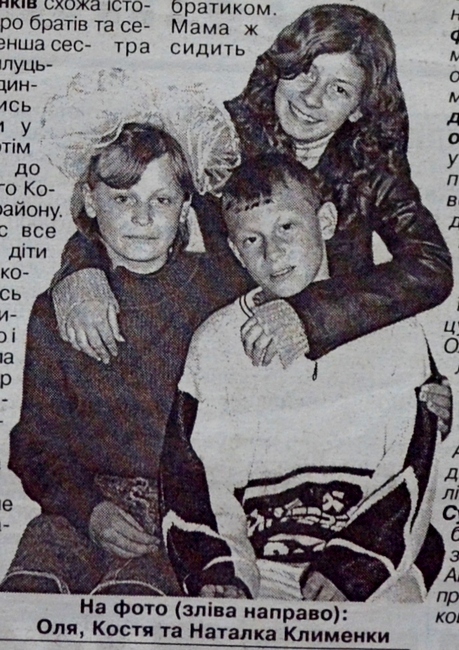 Головна турбота вихователів і вчителів Чере-шенського інтернату — діти. Вони стільки натерпілися за своє коротке життя, що тривалий час доводиться їх лікувати і фізично, і духовно. Ось сестрички і братик Клименки. Найстаршій Наташі — 16, Кості — 13, Олі — 10. Усі старші діти пам’ятають, як батько їх залишив і як вони жили разом з мамою, яка усі гроші витрачала на горілку, а в хаті не було чого їсти, як вони ходили по сусідах. Потім матір позбавили материнських прав, а їх відправили до інтернату.