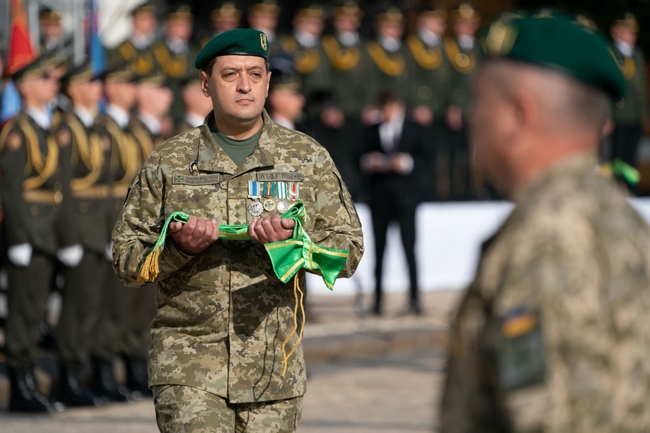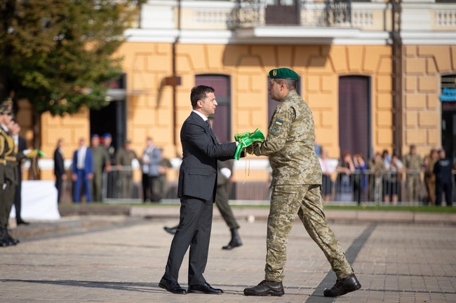 Після підняття синьо-жовтого стягу Президент України Володимир Зеленський вручив стрічки до Бойових прапорів з назвами почесних найменувань. Серед інших, з рук Президента таку стрічку отримав і начальник Чернігівського прикордонного загону полковник Сергій Тиркалов.