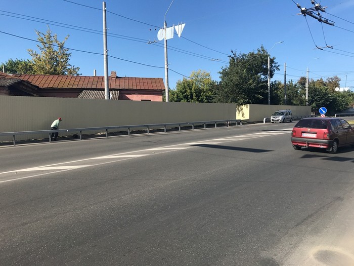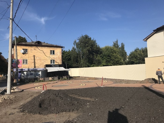 Такой же забор установили и недалеко от новой остановки. Раньше на этой территории находились различные киоски с продуктами. В настоящее время их демонтировали. Теперь на этом пятачке лишь несколько деревьев, каркас для подвесных клумб и тротуар, который сейчас достраивают.