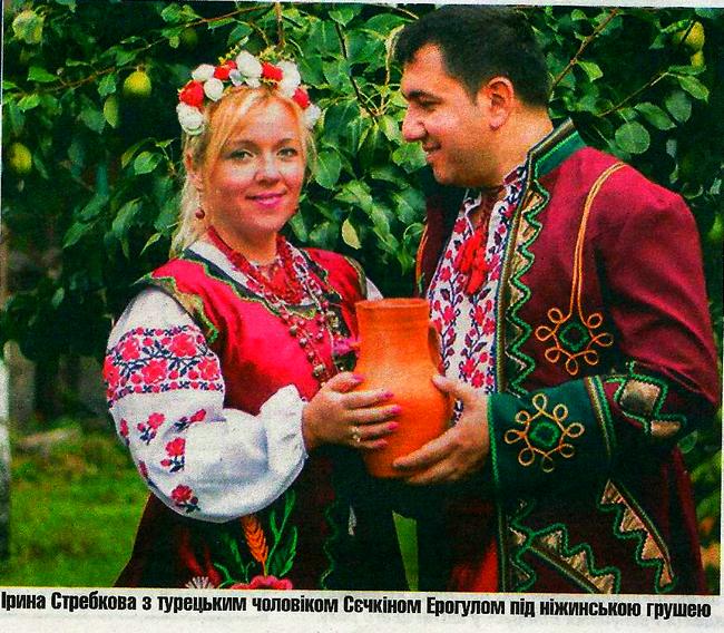 Фотосесію під грушею до першої річниці весілля зробила Ірина Стребкова з Ніжина. Ірина стала відомою і популярною після участі у відомому телешоу «Зважені та щасливі». «Вісник Ч» писав про дівчину у 2015 році. Тоді вона хоч і не перемогла, але помітно схудла та й взагалі змінилась, і не тільки зовні. А ще знайшла своє кохання. І улітку минулого року вийшла заміж за турецького парубка Сєчкіна Ероіула з курортного міста Фініке.