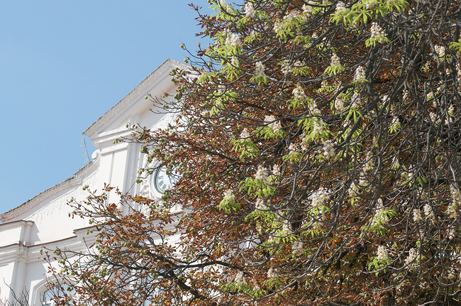 В начале сентября, в центре Чернигова снова зацвели каштаны. Такое явление периодически повторяется в городе. На деревьях еще есть плоды, уже начали осыпаться листья, а на некоторых ветвях зазеленели листья и появились «белые свечи» цветов. И это все одновременно!