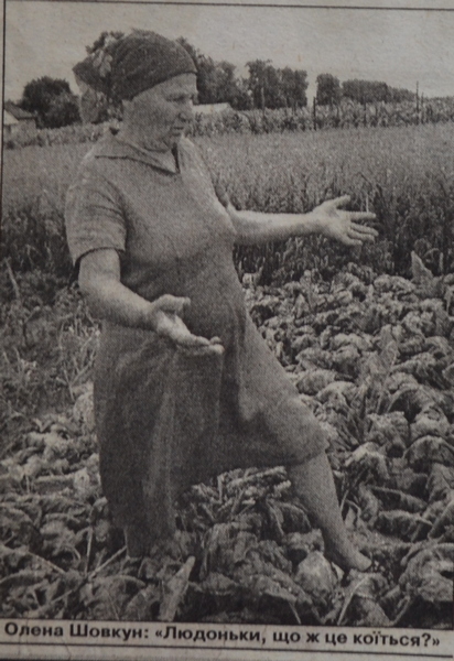 Телефонували з Дорогинки Ічнянського району. Жінка дуже нервувала: вона то зривалася на крик, то говорила зовсім тихо. З її слів шюжна було зрозуміти тільки одне: понівечена майже уся городина в селі... “Приїжджайте, — наполягала жінка, — самі все побачите”. Коли ж ми завітали до Дорогинки, то від людей, які прийшли (а було їх чимало), довідалися, що нещастя спіткало не лише їхнє село, а й сусідні Андріївку, Бакаївку теж Ічнянського району та Синдаревське Ніжинського району.
