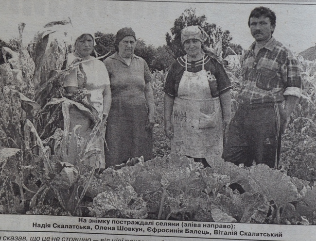 До розмови приєднується Надія Скалатська, яка живе тільки за рахунок прибутку із землі. Вона веде нас на городи, де люди працювали не покладаючи рук, а тепер усе пропало.
