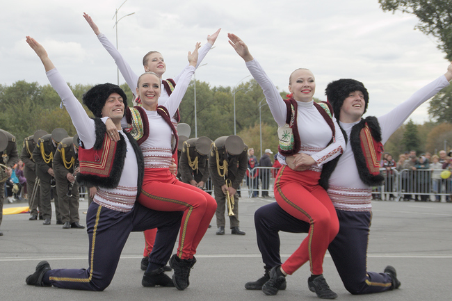 Потім розпочалися показові виступи учасників фестивалю. Військові музиканти подарували слухачам класичну та сучасну музику українських та зарубіжних композиторів, військово-рітуальні твори. Улюбленці міста – військовий оркестр та балет Військово-музичного центру Сухопутних військ ЗСУ, порадував присутніх ще й хореографічними композиціями. Колектив мажореток «Альфа» продемонстрував високу майстерність у виконанні різноманітних трюків з паличкою-мажореткою. Рота Почесної варти окремого Президентського полку імені Богдана Хмельницького продемонструвала стройові прийомі зі зброєю.