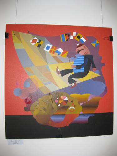 В экспозиции новой выставки представлены 17 работ мастера, которые остались в его мастерской и у его жены, в том числе: «Автопортрет» (70-е гг.), «Вічність» (1990), триптих «Вухо. Око. Ніс» (1995), «Дурна баба» (1993), «Моя дружина – піранья» (1996), «Російська піраміда» (1997), «Веселий настрій» (1999) и другие. Эти картины охватывают все периоды творчества Николая Небылицы: начиная с 70-х годов прошлого века и до 2000-го – года его смерти. Увидим даже последнюю, неоконченную работу основоположника гоп-арта, которая называется «Рыбы». Таким образом, у нас есть возможность проследить основные этапы его творческого пути, формирования фирменного стиля.