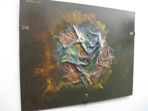 Художник пробовал разные техники, некоторые композиции создавал при помощи бумаги, красок и объемных предметов (стиль «ассамбляж»). На выставке представлены, к примеру, его «Ніч без сну» (1989) с пачкой сигарет и рассыпанными окурками, «Ключі Чорнобиля» (1988) с несколькими разбросанными по картону металлическим ключами – по видимому, от тех квартир, которые в спешке и навсегда пришлось оставить жителям Припяти.