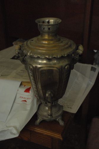 Первая попытка заварить чай оказалась неудачной: самовар протекал. Такой поворот событий подтолкнул меня на поиски еще одного самовара. До аварии на ЧАЭС Чернобыльский район был оживленным местом, в райцентре по выходным проходил большой базар. Однажды, проходя по торговым рядам, я увидел у одной старушки пузатенький небольшой самоварчик. После короткого разговора всего за 5 рублей я стал обладателем первого целого самовара тульской фирмы Баташова. Когда дома надраил медные бока вожделенной покупки, то обрадовался еще больше — это был образец самовара, который получил в 1896-м году золотую медаль "Гран-при" на первой выставке в Париже. Я и сейчас иногда пью чай из этого самовара.