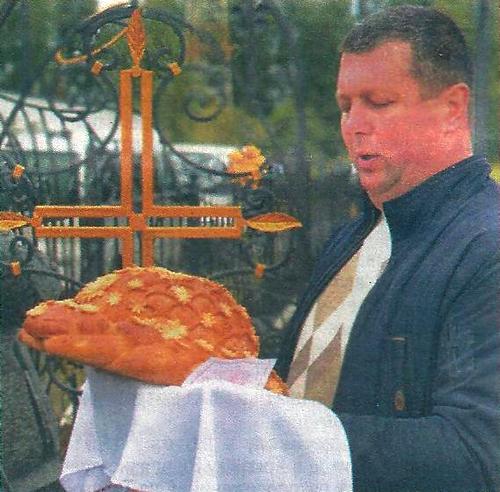 — Аякже, — каже Михайло Олександрович. — Коровай привезли нам з Ніжина. Замовляла моя жінка. Запитала у магазині. Сказали, що нам спечуть на замовлення. Коштує 430 гривень. Красивий. Пахучий.