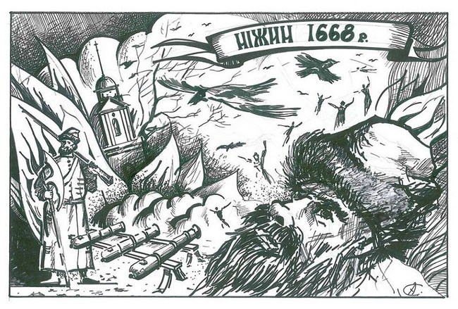 «У кінці серпня 1668 року до Ніжина підійшла армія командувача московських військ князя Григорія Ромодановського, – пише науковець Роман Желєзко. – Залишені без полковника Артема Мартиновича, який втік на правий берег Дніпра, і розуміючи чисельну військову перевагу московитів, ніжинські козаки вирішили здати місто без бою!».