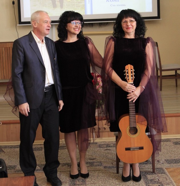 А на ювілейному вечорі цей же колектив, завдяки відеокліпу, представив ще одну пісню – «Дощ із карими очима» (слова та музика – Сергія Дзюби). Обидві пісні – творчий подарунок Тетяні Дзюбі, дружині автора, якій він присвятив усі свої 86 книжок (на думку фахівців, це – єдиний такий випадок в історії світової літератури). Додам, що талановиті відеокліпи на пісні ювіляра створив журналіст Сергій Кордик, котрий також прийшов на свято, щоб підготувати телеверсію цієї неординарної події.