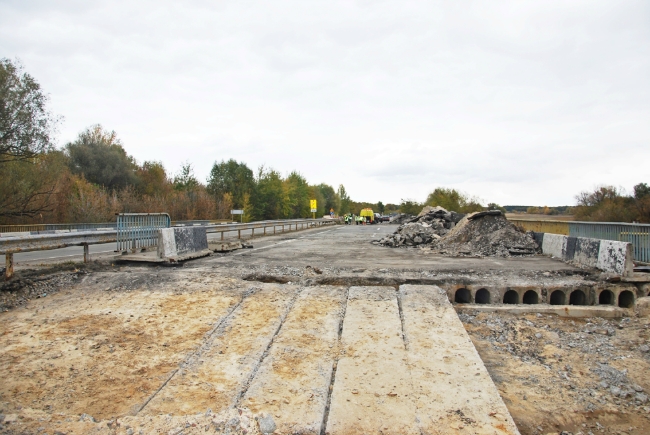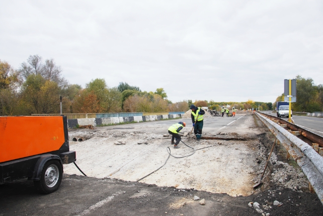 Наразі на мосту вже виконано роботи зі зняття асфальтобетонного покриття над перехідними плитами прогонової будови. Перевірено та уточнено стан щебеневої подушки й самих бетонних плит, після чого ремонтні роботи продовжено. Наступний крок - відновлення щебеневої подушки, яка знаходиться під перехідними плитами, та бетонування. Потім виконання інших видів робіт.