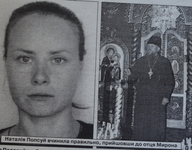 І лише наприкінці цього літа їй нарешті вдалося вирватися із сексуального рабства. Допоміг їй втекти один клієнт. Він нелегально посадив Наталію на пором, що прямував до Одеси, дав Ш сто доларів. Із Криму вона доїхала до Києва, де пішла до посольства Росії. Там її вислухали і виставили за двері, мовляв, ніхто в цю історію не повірить. І тоді Наталія Попсуй вирішила вдатися до крайнощів: без документів перетнути українсько-російський кордон. Купила в Києві карту України, аби зорієнтуватися, яка область найближча до кордону з Росією. Того ж дня вона приїхала до Городні. Не знаю, що спонукало її прийти до настоятеля Городнянської Свято- Миколаївської церкви отця Мирона, але він вислухав нещасну і повірив їй. Отець Мирон переконав Наталку піти до міліції. Це й врятувало молоду жінку.
