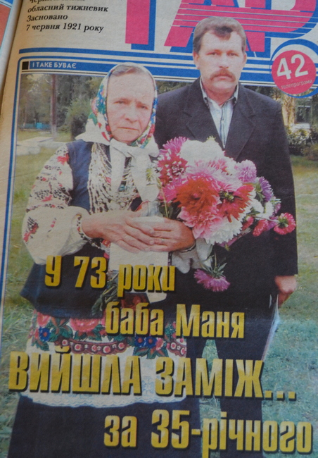 Сьогодні різниця у віці вже не бентежить людей, які хочуть одружитися. Навіть якщо жінка набагато старша за чоловіка. Досить лише згадати, скільки наших і закордонних зірок вийшли заміж за чоловіків, молодших на десятки років. Та що там зірки! Баба Маня з Краснопілля Коропського району нічим не гірша за них. У свої 73роки вона знайшла собі Збройного нареченого!