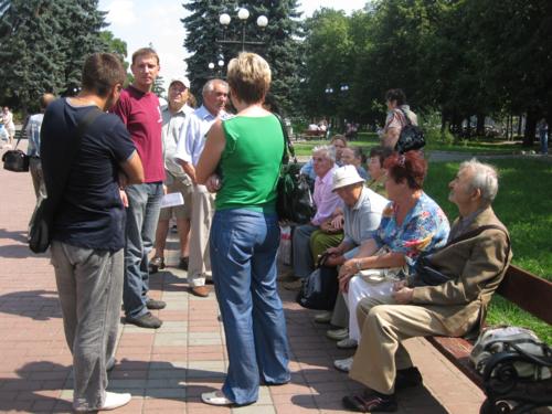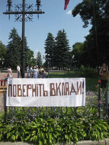 Чернігівці на пікет, як і годиться, прийшли не з порожніми руками. З собою люди принесли гучномовці та плакати з гаслами: «Поверніть вклади!». Також взяли справжні… мильні бульбашки. За задумом організаторів акції, бульбашки, які надували пікетувальники, уособлювали собою обіцянки комерційних банків, що не повертають вкладникам грошей. Своє звернення з вимогами обдурені вкладники передали голові Управління НБУ в Чернігівській області Леоніду Волощуку. У зверненні люди вимагали посприяти у розв’язанні проблеми, ввести тимчасову адміністрацію у відповідні банки та провести перевірку їх діяльності.