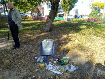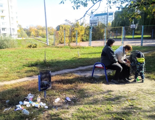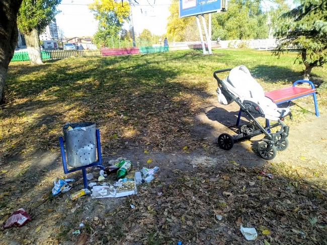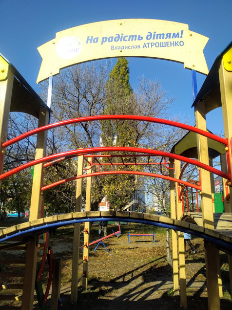 В двадцати метрах от будущего магазина разливного пива размещена детская площадка с надписью “ На радість дітям. Владислав Атрошенко”. На площадке стоит несколько переполненных мусором урн, валяются стаканы и бутылки. Здесь же катаются на качелях дети, на скамейках сидят их родители. Но детей из этого дома на площадке нет, родители уже не приводят их сюда, так как знают, что эта территория в окружении пивных точек, расположенных в этом оживленном районе города, уже давно превратилась в одну большую “наливайку”.