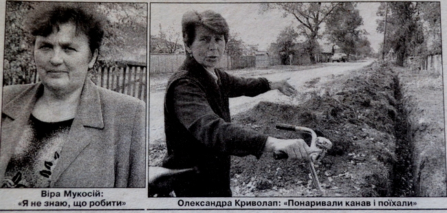 — Нас хочуть надут! Я не згодна доплачувати. Якби мені одразу сказали, що підведення газу до будинку коштуватиме 4300 гривень, я б його зроду не проводила. Думали, що якось ті 3 тисячі зберемо. А треба ще ж і в будинку багато чого зробити. Ось і вийде близько дев'яти тисяч гривень. У сусідніх селах люди провели газ ще й дешевше. І нам радили, бо газове опалення — це така красота. Ми теж хочемо пожити по-людськи.