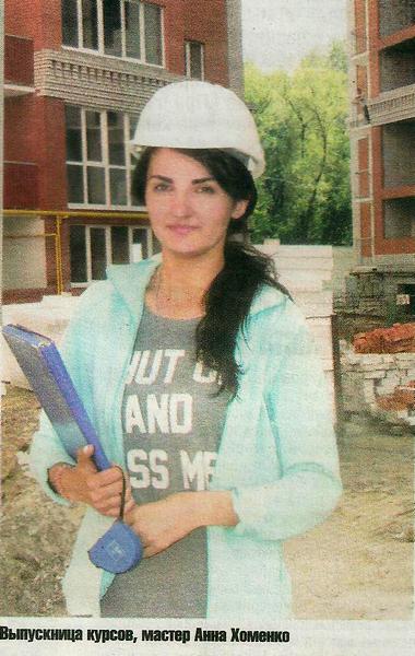Анна Хоменко — одна из 17 выпускников первых организованных строительной компанией «УкрСіверБуд» курсов. Обучение стартовало в марте. Длительность — три месяца. Экзамены и вручение «дипломов», как и у многих школьников области, прошло 28 мая.