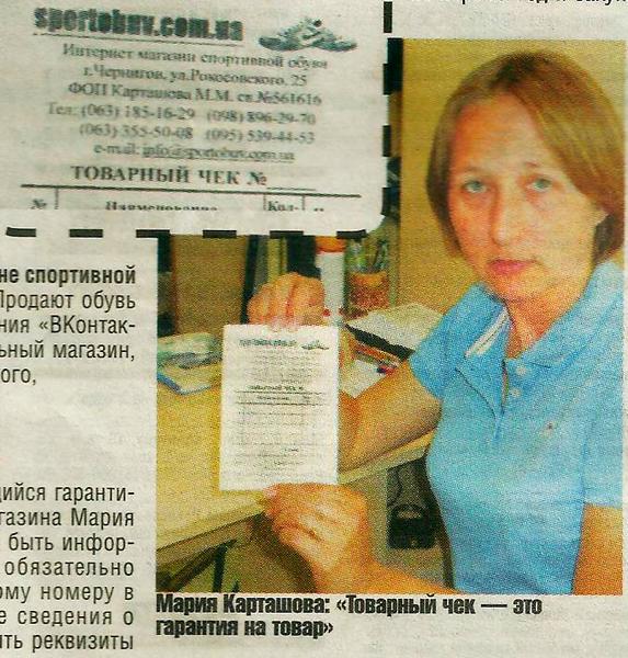 — Объявление увидела на сайте бесплатных объявлений ОLX, было подписано «Жанна», — рассказывает. — С продавцами договорились встретиться возле «Союза» на Боевой (Героев Чернобыля). В 19 часов я пришла с сыном. На легковом автомобиле подъехала семейная пара. Жена, муж, маленький ребенок. Девушка вышла, назвалась (имени я не запомнила). Сказала, что Жанной зовут мать, что она ее заменяет. Вынесла обувь. Красные кеды-конверсы, за пару — 500 гривен. На двух парах уступила мне 50 гривен.