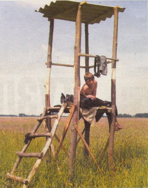 Підходимо ближче. Особливих пахощів не чути. Справа, майже над дорогою, дерев'яна вишка. На ній сидить юнак. Сперся на дорожну сумку, слухає плейєр. Поряд лежить телефонна трубка. Очі розумні, симпатичний. Студент, робимо висновок. Виявилося, так і є. Євген Рекун вчиться в Чернігівському інституті права і соціальних технологій. Майбутній юрист.