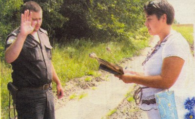 Ага, зараз. Відступаємо, але маківки тримаємо в руках. Тоді суворий сержант витягує їх з наших лап і викидає на поле. Перед цим переписує наші прізвища. Як виявилось, щоб потім доповісти міліцейському начальству і перевірити, чи справді є такі журналісти.