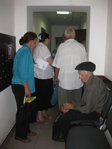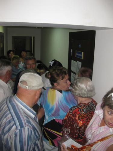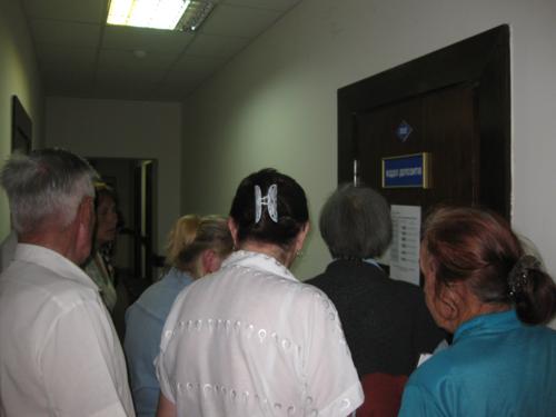 Напередодні містом прокотилась чутка про те, що в четвер, 6 серпня на рахунок ЧФ АБ «Синтез» нарешті має надійти готівка. Тому сьогодні вже о пів на сьому ранку біля відділення банку вишикувалась черга вкладників. Комусь потрібні гроші на лікування, хтось відкладав на весілля дитини, одна старенька бабуся прийшла за грошима, бо хоче придбати новий холодильник, адже старий - геть зіпсувався. Деякі ж люди просто хочуть забрати свої вклади, бо це їхні гроші, а строки договорів вже давно закінчились.