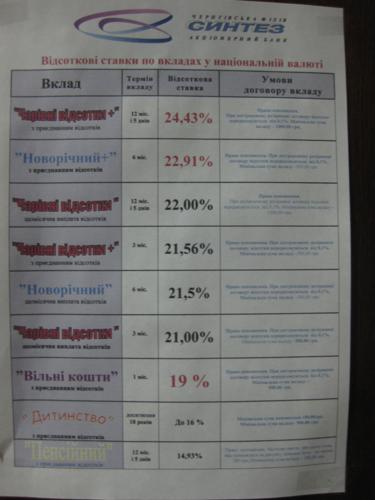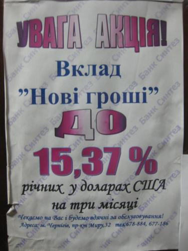 Як вдалося з’ясувати, у деяких вкладників банку «Синтез» строки договорів закінчились ще в квітні. Минає літо, а банкіри продовжують годувати людей обіцянками-цяцянками й не видають їм депозитів. Простоявши у вузенькому коридорі під дверима відділу депозитів півдня, люди почали розходитись. Багатостраждальні вкладники, які прийшли забрати гроші покладені на депозит, не отримали ні копійки. Їм співробітники банку запропонували або продовжити договір, або просто чекати. Цього дня поталанило лише тим людям, які прийшли за щомісячними відсотками. Коли доля посміхнеться всім вкладникам чернігівської філії банку «Синтез», наразі невідомо. Директор ЧФ АБ «Синтез» прокоментувати ситуацію відмовилась.