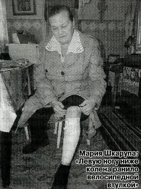 — Я собиралась встречать мужа с поезда. Минут за 20 до 19 часов выехала велосипедом из дому, - вспоминает Мария Федоровна. - С Минской, на которой живу, завернула на улицу Глебова, по тротуару доехала до перекрестка с улицей Полетаева и тут... Только я высунулась передним колесом с тротуара на Полетаева, как на меня налетел белый бусик и ударил в переднее колесо. Я даже не сразу поняла, что случилось. Упала на землю, на меня — велосипед. Почувствовала резкую боль в левом плече и ноге, а также тупую боль в голове. Это уже позже поняла, что ударилась головой о землю, а ногу ниже колена ранило велосипедной втулкой. Когда немного опомнилась, стала звать соседа Павла Романенко, около дома которого все это случилось. На крик выбежала дочь Павла Ирина. Подскочил и водитель машины — поднял велосипед, поставил под забор и кинулся ко мне: «Простите, простите! Я вам тысячу дам». Я же в таком шоке была, что все слова пролетали будто мимо меня. Рукой нащупала в кармане телефон, хотела позвонить дочери, но он был разбит. Попросила позвонить Иру. У нее телефона с собой не было, она пошла за ним в дом, через минуту выбежала на улицу, и тут водитель машины, увидев у нее телефон, как рванул — за какие-то секунды вскочил в свою машину и скрылся. Видимо, испугался, что Ира сфотографирует его или машину. Номера я, к сожалению, не увидела, как и Ира. Запомнила лишь, куда машина поехала — прямо по улице Полетаева идо Курской.