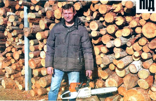— Усе літо і місяць осені махали бензопилою «Штіль», — показує інструмент Володимир Комяко. — 3 лісхозу привозили, маніпулятором вивантажували, а ми вже пиляли і складали під навіс. Під музику. В школі працюю другий рік. До цього трудився в охороні. Морально нинішня робота легша, а от фізично — важча.