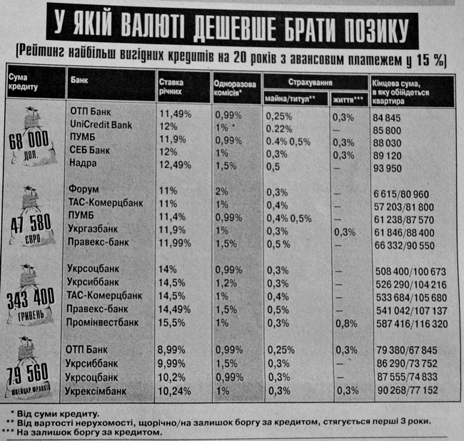 Після того яку „Гарті” (№42-43 від 19 і 26 жовтня 2007року) був опублікований матеріал „Квартирна fata morgana», до редакції почали звертатися читачі з проханням продовжити тему кредитування купівлі житла. Більшість людей цікавить, у якій же валюті краще за все брати кредит.
