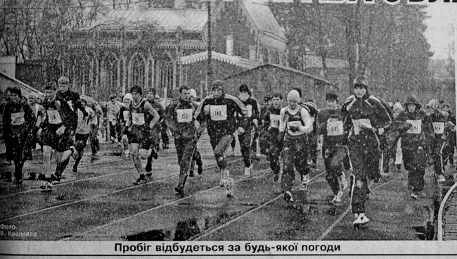 Недільний ранок, 11 листопада. Мокро і холодно. Легкоатлетам, які юрбилися на старті останнього у цьому сезоні забігу, потоки води дошкуляли згори і знизу — за температури повітря +1 °С дощові краплі із снігом потрапляли за комірці спортивних курток, а в кросівках вже почало хлюпати. Погода саме така, від якої добрий хазяїн навіть пса береже. Сидіти б вдома, тим паче за годину по телебаченню ТШвощук поведе свій „Зеніт” до чемпіонського звання. Так ні: бігунів на старті — цілий натовп. Ну нехай студенти (куди їм, бідолашним, подітися з „підводного човна” за місяць до сесії), але ж там — і 5-річна дівчинка, і 81 -річна жіночка (Скажете, бабуся? Та вік цієї моложавої жінки видають тільки цифри на передстартовій реєстрації!). А все тому, що пробіг був присвячений ювілею його організатора — Геннадія Костянова.