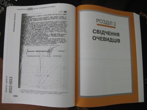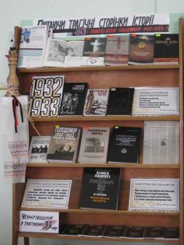 Понад 50 комплектів «Національної книги пам'яті жертв Голодомору 1932-1933 років в Україні» було передано міським і районним бібліотекам Чернігівщини, деяким вищим навчальним закладам, Чернігівському обласному історичному музею імені Тарновського та Державного архіву Чернігівської області.
