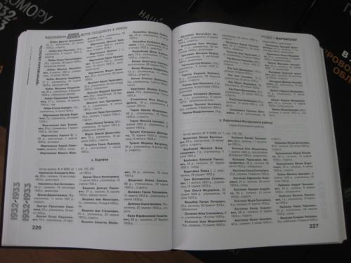 «Національна книга пам'яті жертв Голодомору 1932-1933 років в Україні» включає в себе загальноукраїнський том, 17 обласних томів та том міста Києва. Загалом 19 томів. «Ці томи - є унікальним масштабним виданням, в якому не тільки висвітлено причини і механізми організованого Сталінським режимом терору, а й увіковічено імена наших співвітчизників, які стали жертвами цієї страшної трагедії» - сказав під час презентації заступник начальника управління з питань внутрішньої політики та зв’язків з громадськістю облдержадміністрації Юрій Музика. Загальний обсяг виданих томів становить понад 22 тисячі сторінок.