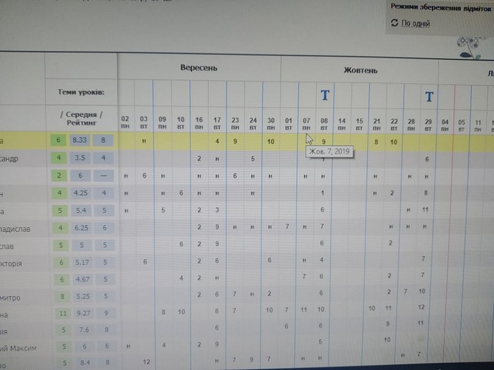 -Бали в журнал вносить кожен вчитель-предметник. Коли у нього є вільний час він заходить у систему і вносить дані. В середньому це буває раз на 7-10 днів. В ідеалі це робити після кожного уроку, але так не виходить. Адже вчителю потрібно підготуватись до наступного уроку, перевірити зошити, тощо.