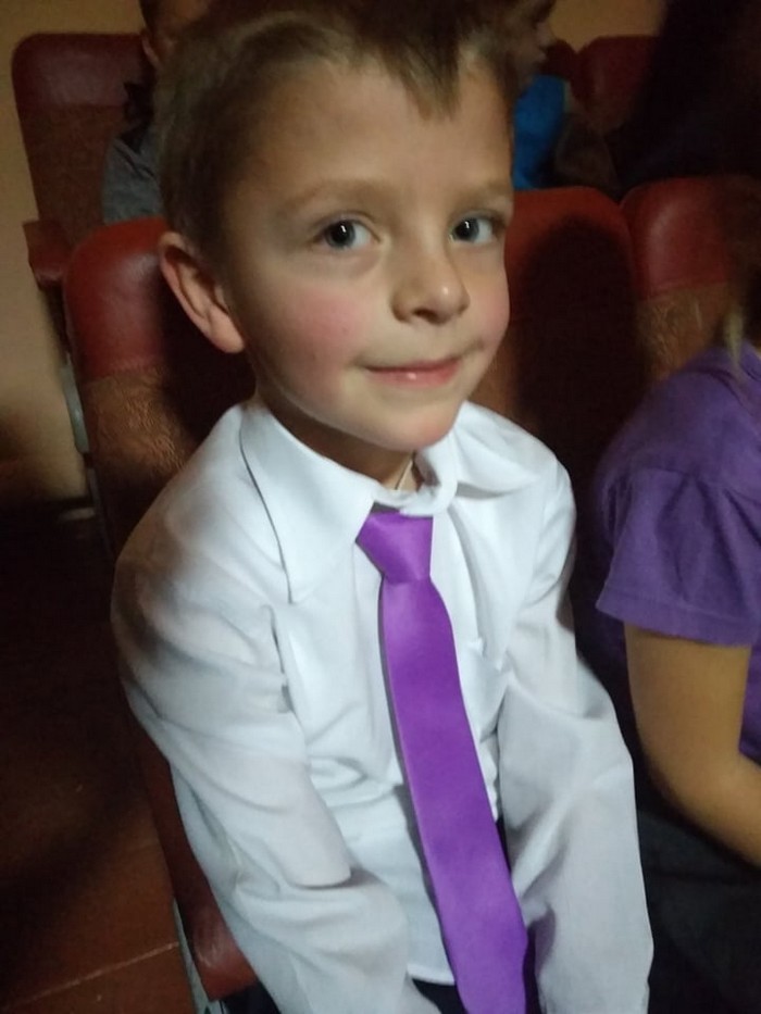-Сьогодні свято і я хочу бути красивим, тому одягнув цю фіолетову краватку. Ми її купували разом з мамою.