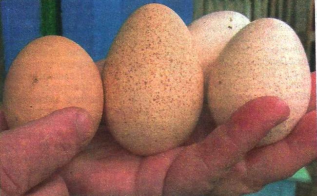 Уже й яйця несуть. По два-три на тиждень. Удвічі більші за курячі. З рожевими плямками. На смак схоже на куряче, тільки як розбивати, то плівка міцніша.