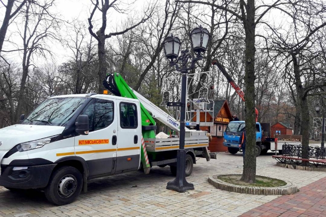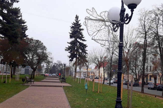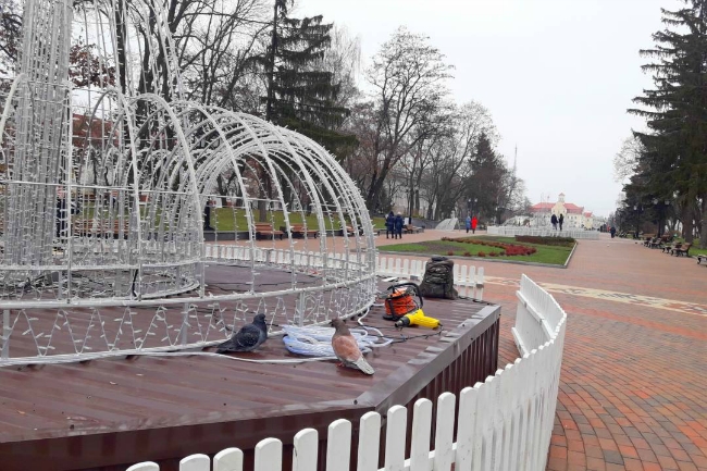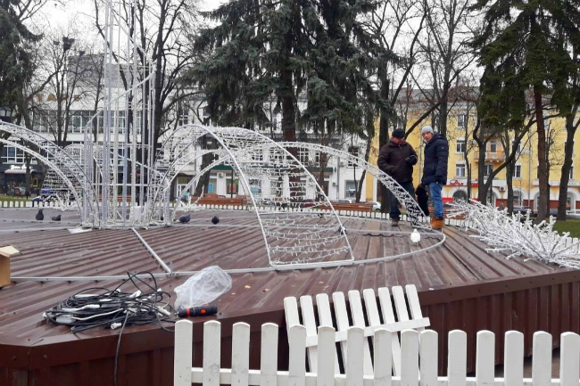 У Чернігові почали встановлювати святкову ілюмінацію. На Алеї Героїв та у сквері ім.Б.Хмельницького атмосферу новорічних та різдвяних свят підтримуватимуть світлові фонтани та вогники у вигляді дзвіночків на вуличних світильниках. Встановлювали їх працівники КП «Міськсвітло».
