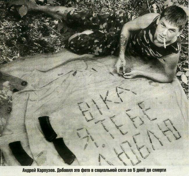 В статусе в социальной сети у Андрея было написано: «Как я устал». Последние дни перед смертью Андрей добавлял у себя фотографии с цветами, сохранил картинку: «Эй, ты, люби меня». Выложил фотографию, видимо, из зоны АТО. На ней Андрей лежит в камуфляже, а рядом с ним патронами выложена надпись: «Віка я тебе люблю».