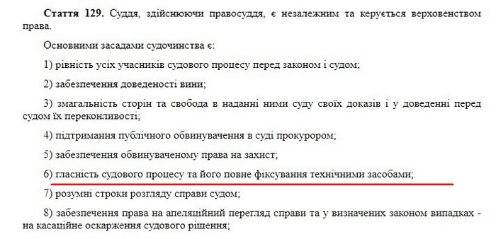 Відповідно до п. 6 ст. 129 Конституції України, до основних засад судочинства віднесено гласність судового процесу та його повне фіксування технічними засобами.