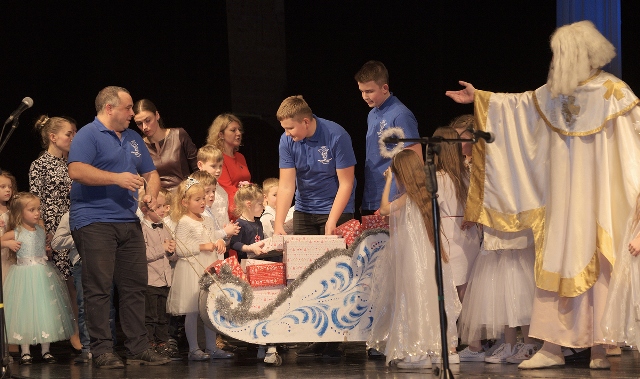 І звичайно ж, під бурхливі оплески зали, з повними саньми подарунків до дітлахів завітав Святий Миколай!