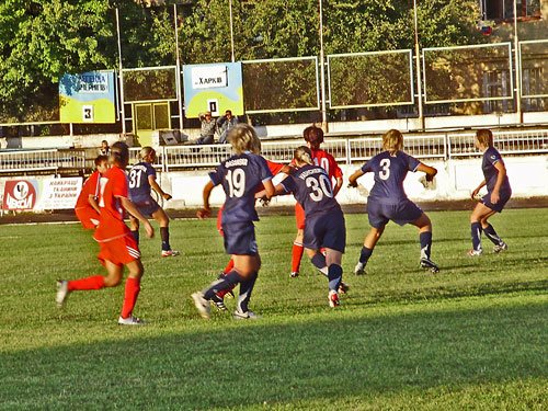 Матч начался с первой атаки «Легенды», и она сразу же завершилась голом на первой минуте. Окрыленные успехом, наши девушки снова атакуют ворота соперниц, и через пять минут, счет становится 2:0. Харьковчанки после пропущенных двух голов, выглядели растерянно, и наши девушки воспользовались этим, доведя счет в матче до 3:0. Одержав за 15 минут солидное преимущество, футболистки «Легенды» спокойно доиграли первый тайм, позволив соперницам пару раз пробить мимо своих ворот. Конечно, на перерыв команды ушли с разным настроением.