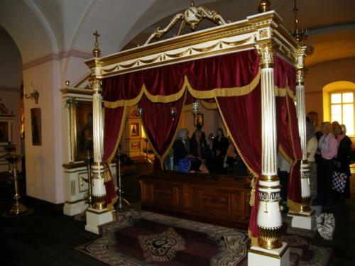 Первое, что удивило на острове, это то, что вообще не было видно, что в монастыре ожидают приезд Патриарха. Никакой показушной уборки, мойки окон, покраски стен и прочей суеты не было! Вертолет с Патриархом, прилетевший с Валаама, уже кружил над монастырем, а в соборе шла своим чередом служба, и, казалось, никому и дела нет до визита главы православной церкви. А о том, чтобы всем паломникам покинуть остров в определенное время, не было и речи! После приземления Патриарх проследовал в собор на службу в сопровождении нескольких охранников, где его могли лицезреть все желающие. При этом можно было фотографировать Патриарха Кирилла чуть ли не в упор (что я, естественно, и сделал)! Но когда я направился к патриаршему вертолету и стал его снимать, мои друзья подумали, что сейчас меня или арестуют, или, в лучшем случае, заберут фотоаппарат. Ничего подобного! Полная свобода! В итоге у меня сложилось впечатление, что этот Патриарх Московский весьма демократичен и прост в обхождении. Жаль, наш катер уже уходил с острова, и я не дождался общения Патриарха с паломниками!