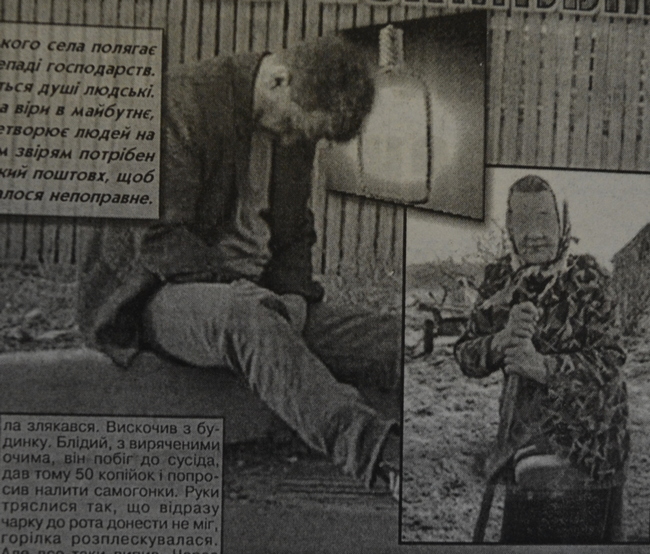 Руйнування українського села полягає не тільки в занепаді господарств. Руйнуються душі людські. Безпросвітність, втрата віри в майбутнє, масове пияцтво перетворює людей на справжніх звірів. І цим звірям потрібен лише невеликий поштовх, щоб пролилося кров і сталося непоправне.