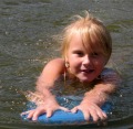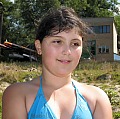 − Мне уже шесть лет, и я умею плавать, только неправильно. Мне говорят, что у меня нет стиля. Плавать я училась у себя, там, на «земснаряде». А еще мы ездили с папой и мамой в Остреч. Купаться я хожу почти каждый день, когда нету дождя, но бывает, что и под дождем, мелким… Завтра мы придем с бабушкой сюда опять, потому что я хочу научиться плавать…