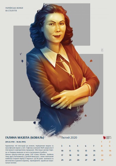 Лютий презентує Галину Мазепу (Коваль) - художницю, чиї ілюстрації до книжок, періодичних видань та мультфільмів відомі у світі. Нафтова компанія Shell запросила її ілюструвати корпоративну продукцію Мистецькі центри Європи та Америки вважали за честь експонувати її роботи. Донька прем'єр-міністра уряду УНР Ісаака Мазепи. який походив з села Костобобрів Семе шве ького району. Знайшла свою другу батьківщину у далекій Венесуелі, з якою пов'язаний найбільш плідний перюд її творчості. До 85 років малювала та виготовляла кераміку. відтворювала українські національні мотиви.