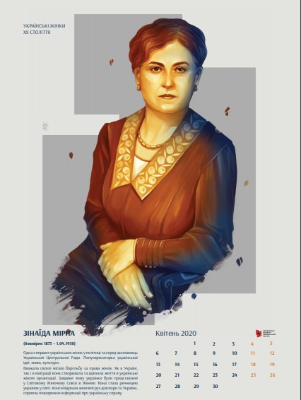 Квітень прикрашає Зінаіда Мірна, одна з перших українських жінок у політиці та серед засновниць Української Центральної Ради. Популяризаторів української ідеї, мови, культури. Вважала своєю мюісю боротьбу за права жінок Створювала та вдихала життя в українські жіночі організації, завдяки чому українки були представлені у світовому Жіночому Союзі в Женеві.
