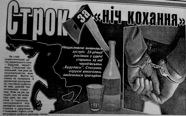 Нещасливою виявипасш зустріч 25-річної росіянки з удвічі старшим за неї чернігівським „Будулаєм". Стосунки, отруєні апкоголем, закінчилися трагедією.